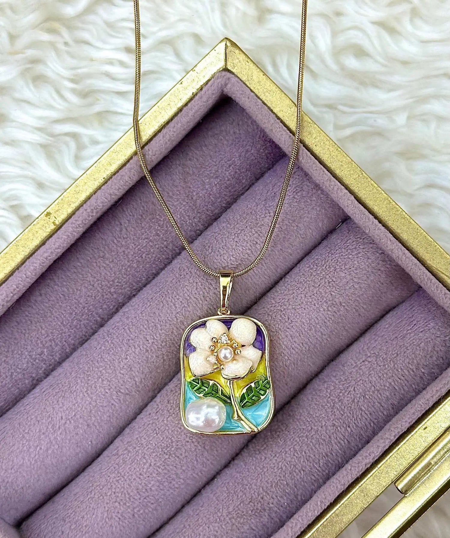 İnci Çiçek ve Yaprak Detaylı Modern Kolye