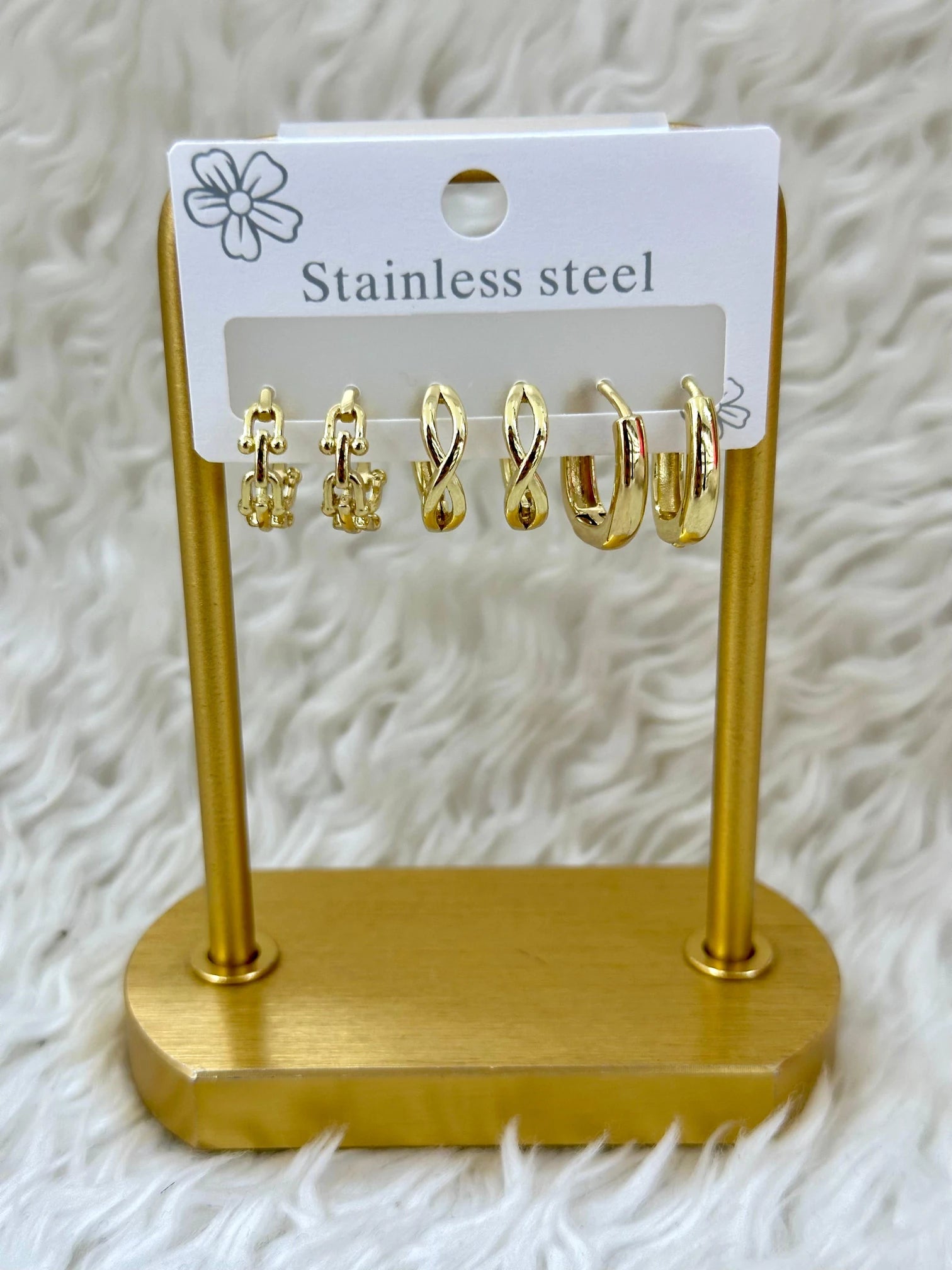 Altın Infinity Mix – 3 Çift (6 Adet) Mini Halka Seti