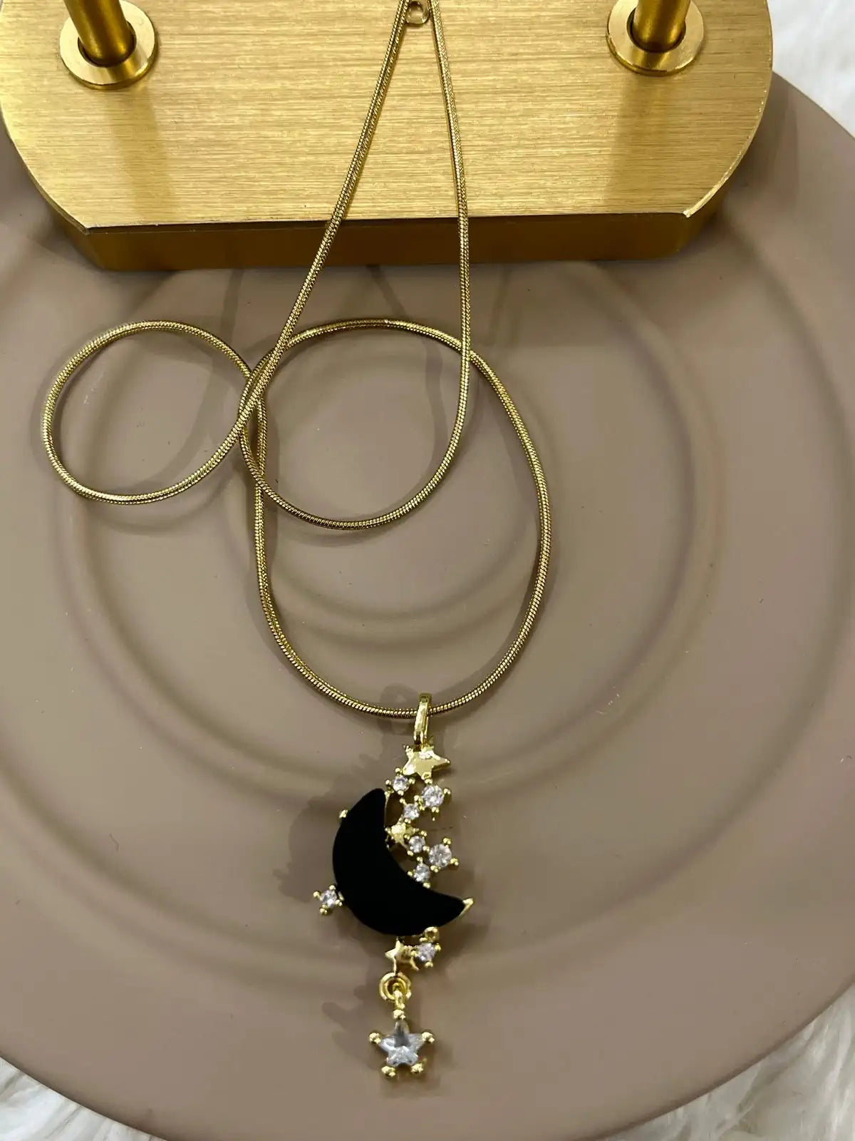 Gece Siyahı Ay ve Yıldız Çelik Kolye