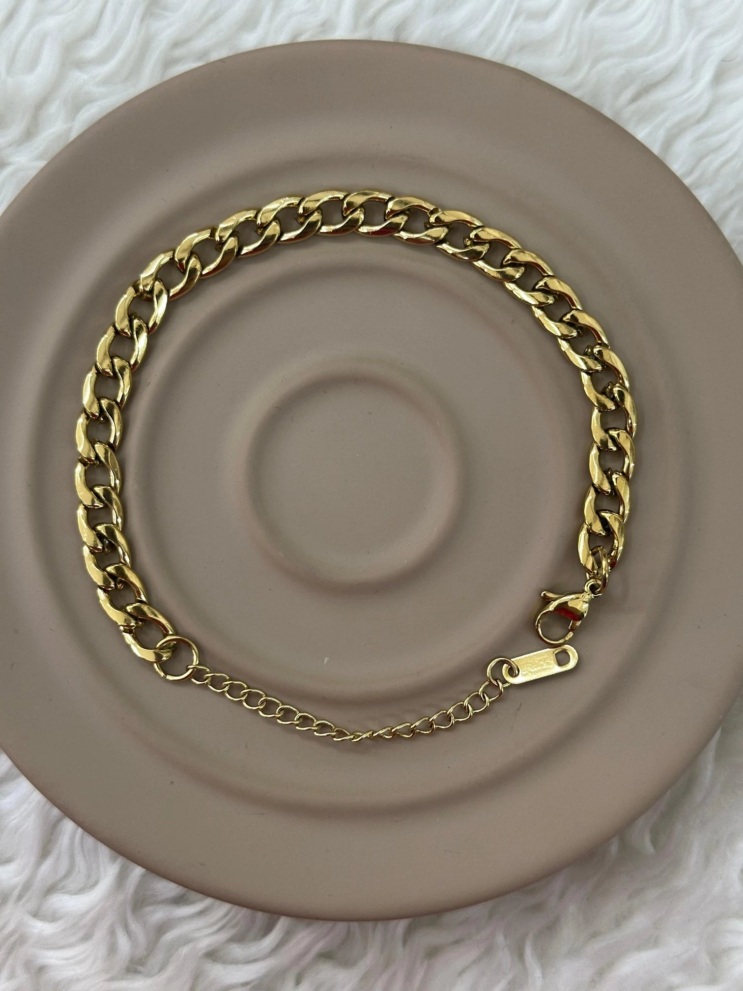 Güçlü ve gösterişli görünümüyle öne çıkan bu bileklik, modern zincir dokusuyla stilinize enerjik bir hava katıyor. Özel bir alaşımdan üretilen halkalar, uzun ömürlü parlaklığını korurken her hareketinizde ışıltısını yansıtıyor. Ayarlanabilir kilit sistemi sayesinde 16–20 cm arasında kolayca uyum sağlar; tek başına dikkat çeken bir detay, diğer aksesuarlarla kombinlendiğinde ise şıklığınızı tamamlayan çok yönlü bir parça olarak kullanılabilir.