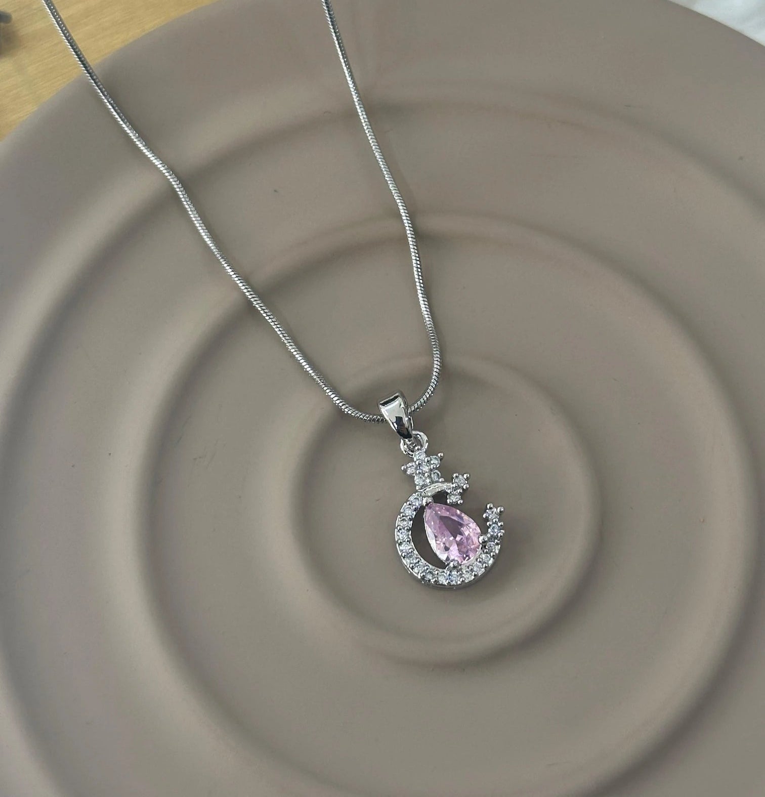 Pembe Damla Ay Kolye