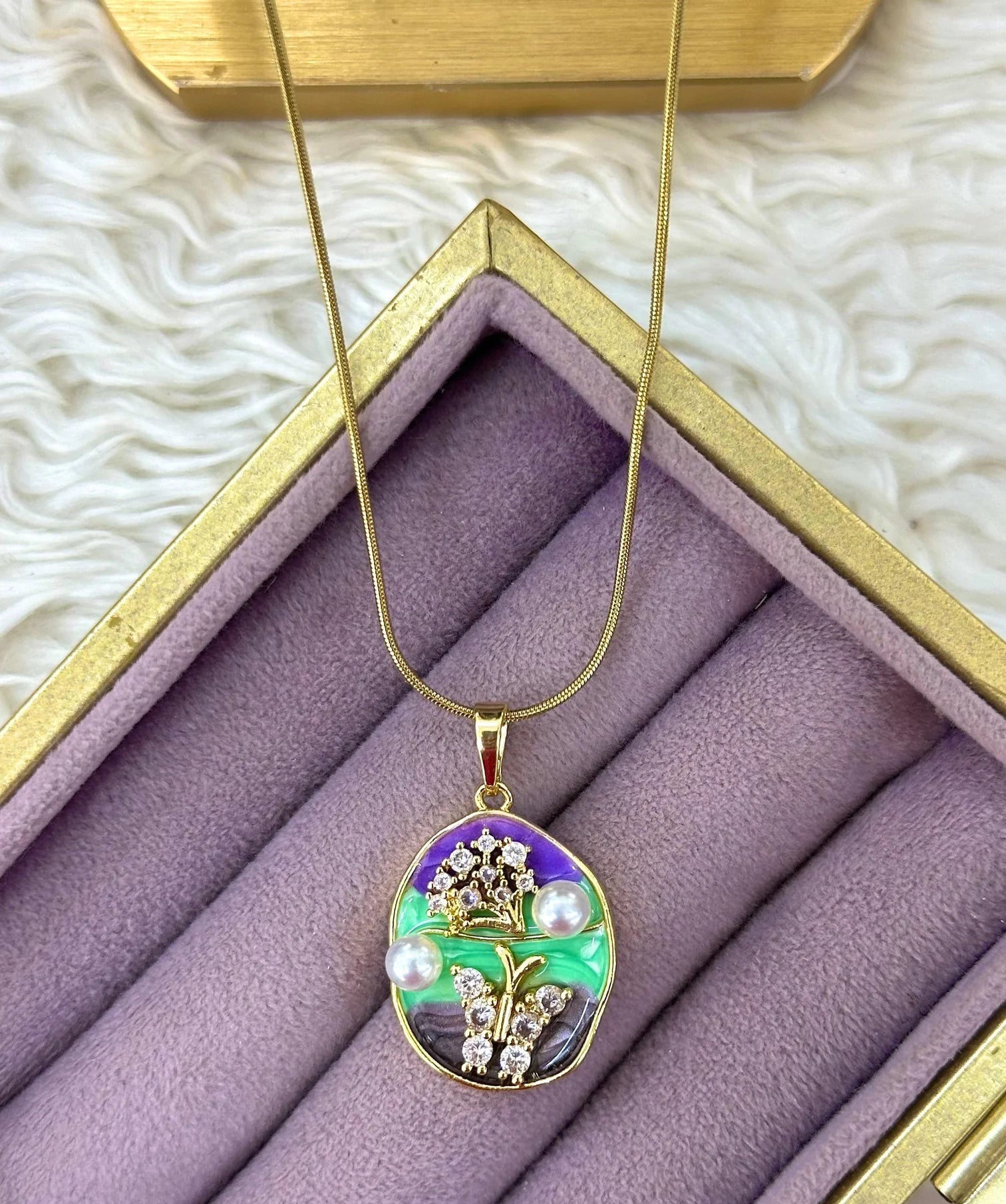 Zarif Kelebek ve Çiçekli İnci Kolye