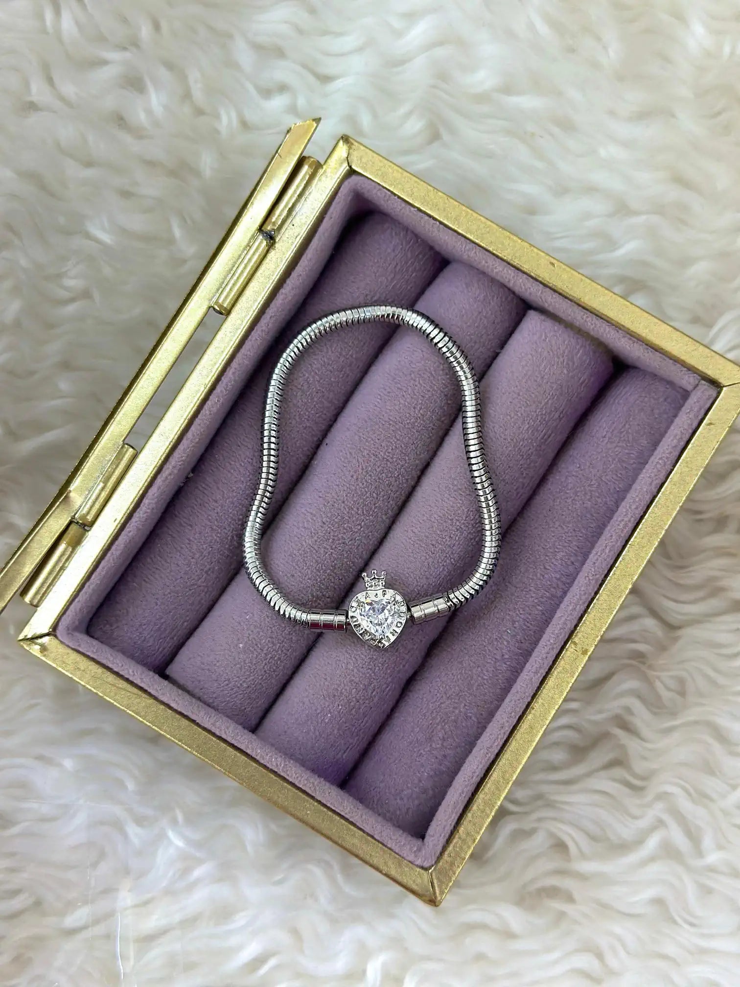 Taçlı Kalp Zirkon Yılan Zincir Bileklik (17cm)
