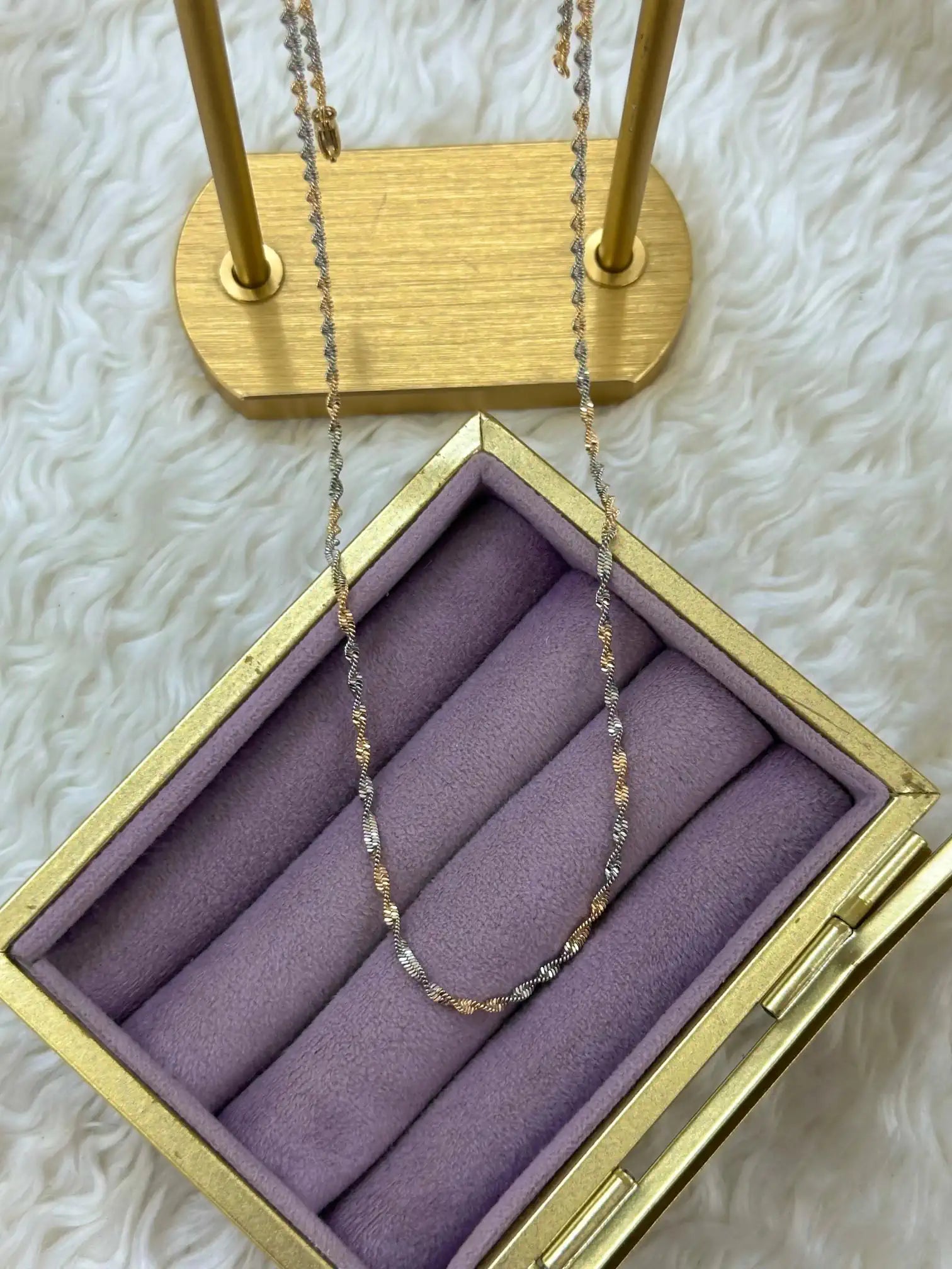 Modern ve şık tasarımıyla öne çıkan bu üç renkli burgu zincir kolye, altın, rose ve beyaz tonlarının harmanlanmasıyla göz alıcı bir görünüm sunar. Her stile uyum sağlayan bu zarif kolye, günlük kullanımda da özel davetlerde de rahatlıkla tercih edilebilir. Hafif yapısı sayesinde gün boyu konfor sağlar. Yüksek kalite işçiliği ile uzun ömürlü kullanım sunar. Stilinizde sofistike bir dokunuş arıyorsanız, bu üç renkli burgu zincir kolye tam size göre.